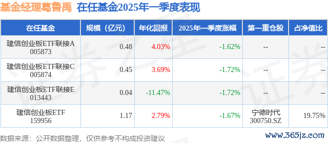 本站消息漢崋资本,日前建信创业板ETF基金公布一季报,2025年一季度最新规模1.17亿元,季度净值涨幅为-1.67%。
