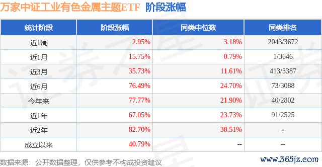 本站消息,日前万家中证工业有色金属主题ETF基金公布一季报,2025年一季度最新规模5.95亿元达人配资,季度净值涨幅为7.64%。