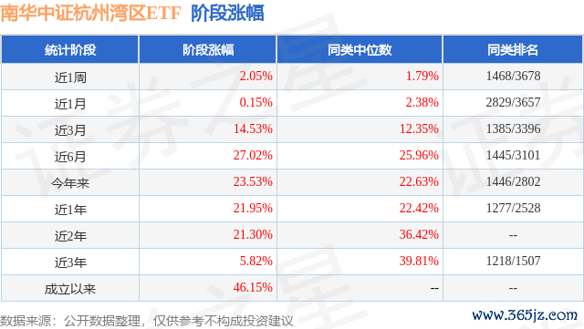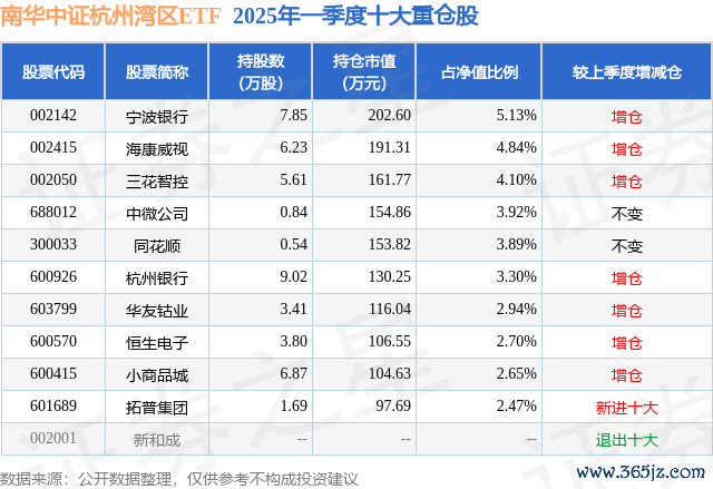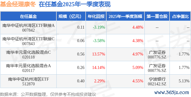 本站消息西安高新配资,日前南华中证杭州湾区ETF基金公布一季报,2025年一季度最新规模0.4亿元,季度净值涨幅为4.55%。